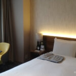 ちょっとアレっ?と思ったのは、ホテルの公式の写真だとボルスタークッションっていうのかな(円柱形の長いクッション)があったんですけど、実際には無かったです。なぜか理由を確認したわけじゃないんですが、コロナ感染防止の関係かもしれないですね。
